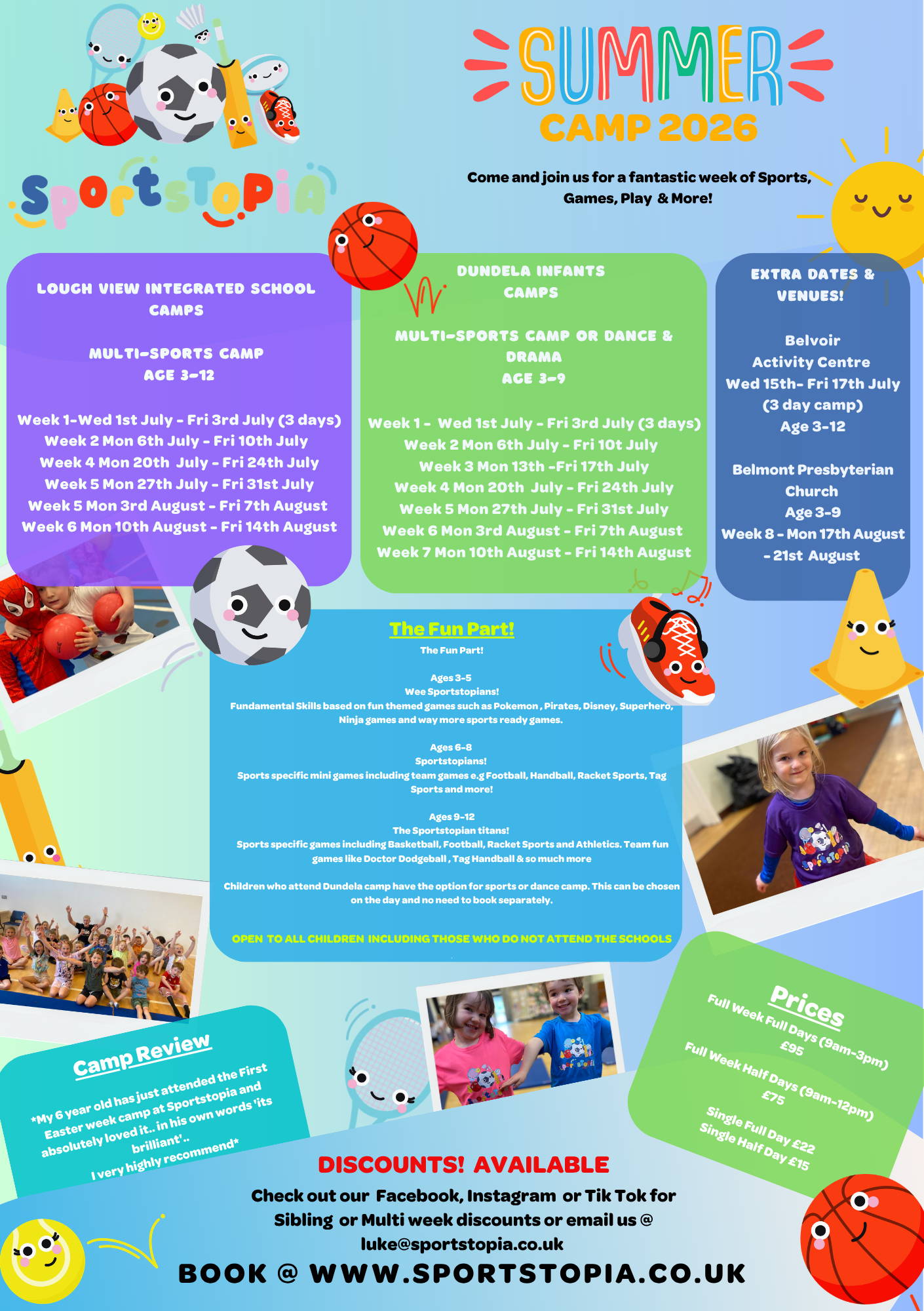 Sportstopia is a fantastic and exciting new kids multisports initiative to come to Northern Ireland. At Sportstopia, children of all ages will have the opportunity to develop their skills in a range of sports whilst having plenty of fun, getting fit and making new friends.